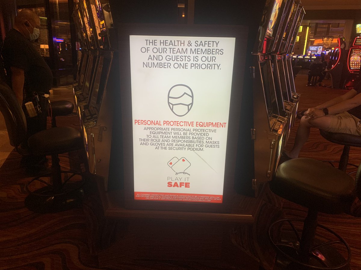 Lots of signs reminding people to take safety precautions on the casino floor.pic.twitter.com/fryeRu2dc1