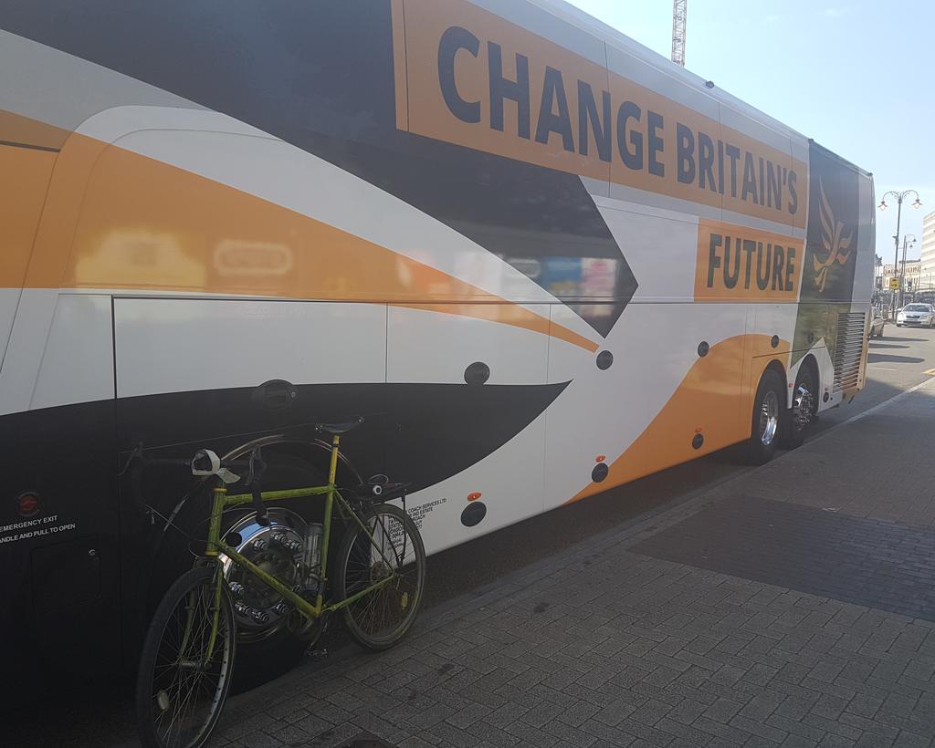 Battle bus v Battle bike - same party, different budgets! Great to see @timfarron launching in #cardiff #GE2017 #welshlibdemspic.twitter.com/LbVO1vC2fQ