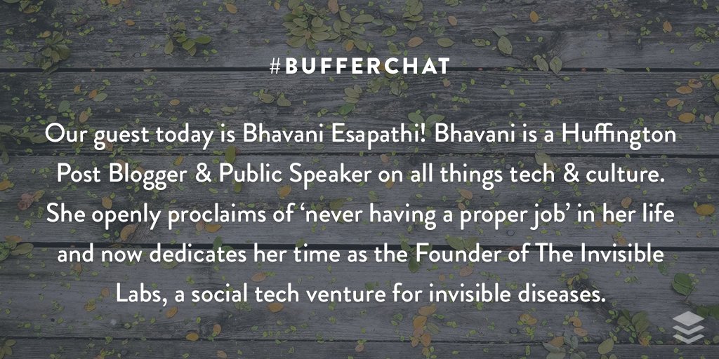#bufferchat guest, Bhavani Esapathi@bhaesa!pic.twitter.com/L48vc5vQMK