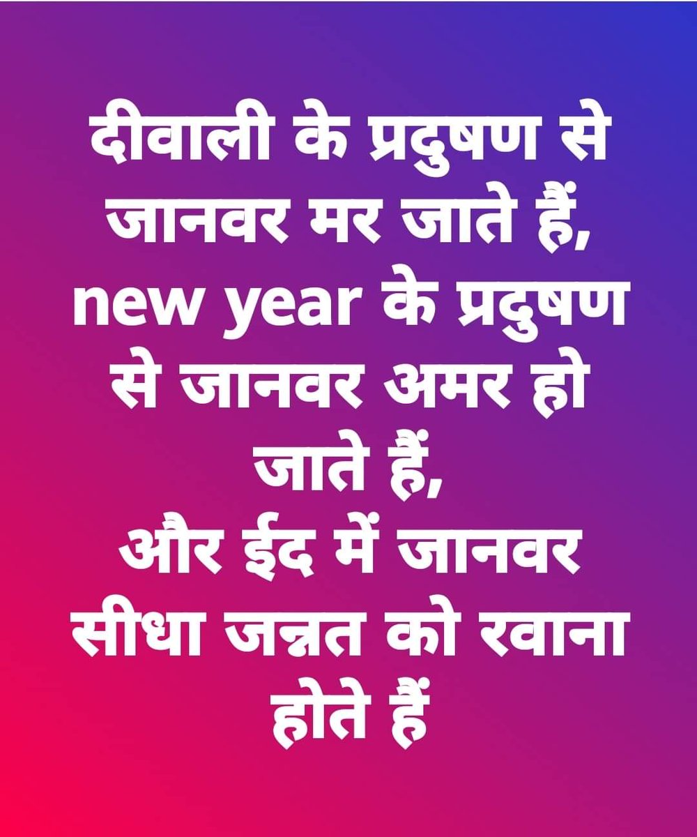 Why u all hypocrites only care for dogs during Diwali ? Other animals are not living beings. Stop eating non-veg and spare other animals too