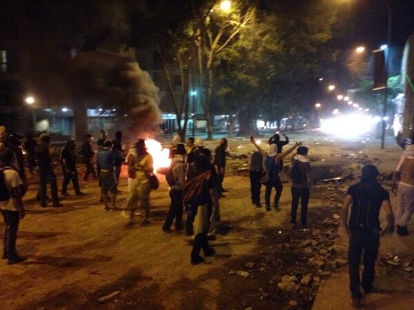 This was the scene at the barricade. Police revving their bikes aggressively. #altamira #caracas #Venezuelapic.twitter.com/2VRpa8S0PT