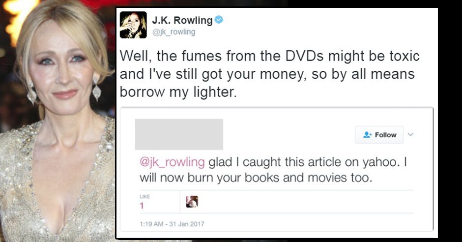 JK Rowling Has Been Roasting Trolls On Twitter Nonstop Lately - http://bit.ly/2kWhf47 pic.twitter.com/FtqpPhbwBL