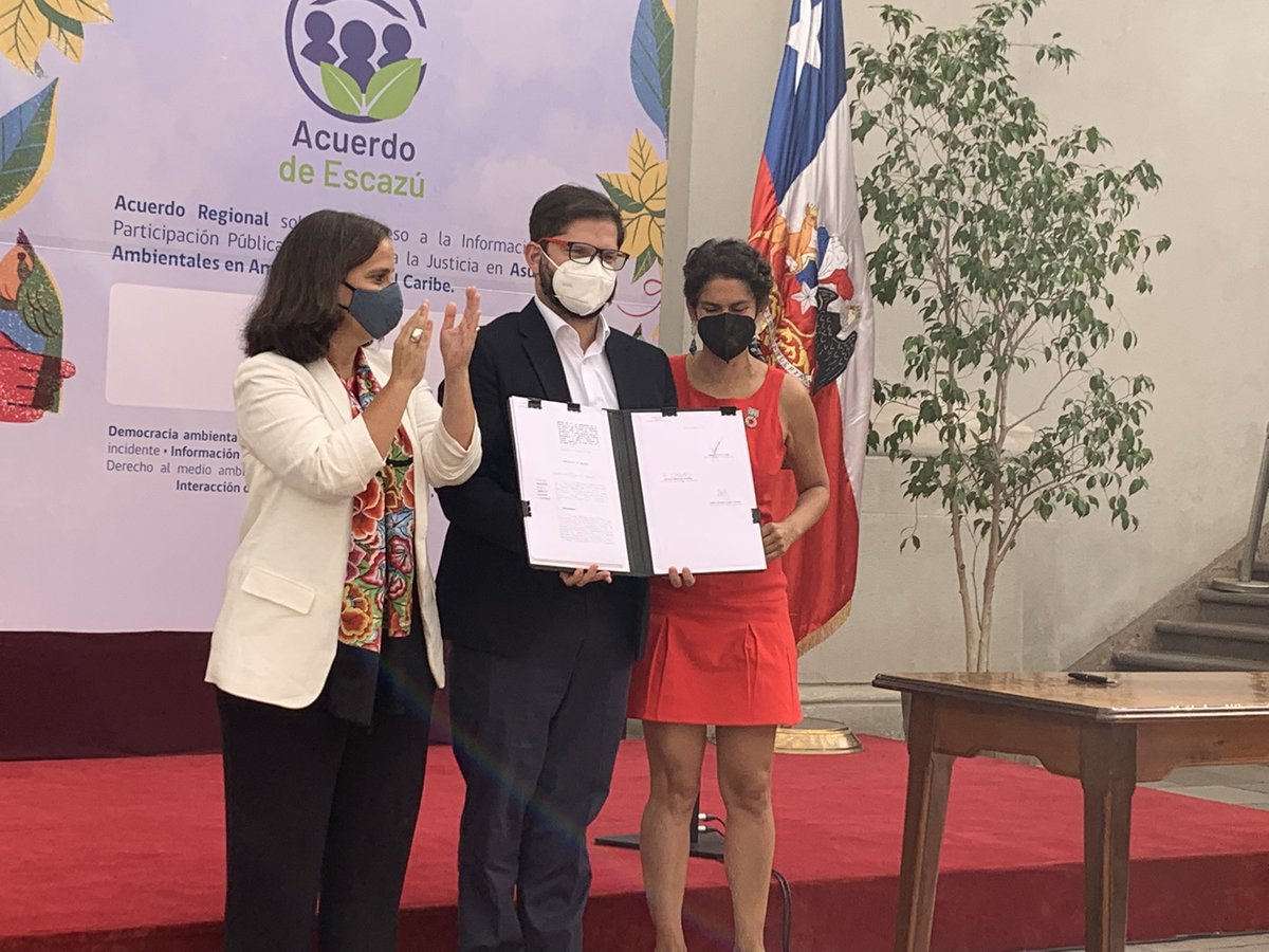 #Chile al#AcuerdoDeEscazú Agradezco las muestras de reconocimiento del Pdte.@gabrielboric@UrrejolaRREE@Maisa_Rojas. Juntos seguiremos luchando por un#desarrollosostenible con mayor#igualdadpic.twitter.com/Fs43brl293