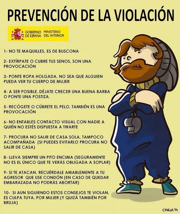 Mujeres para qué no os violen. Gobierno de Españapic.twitter.com/F9P7F9GmXD