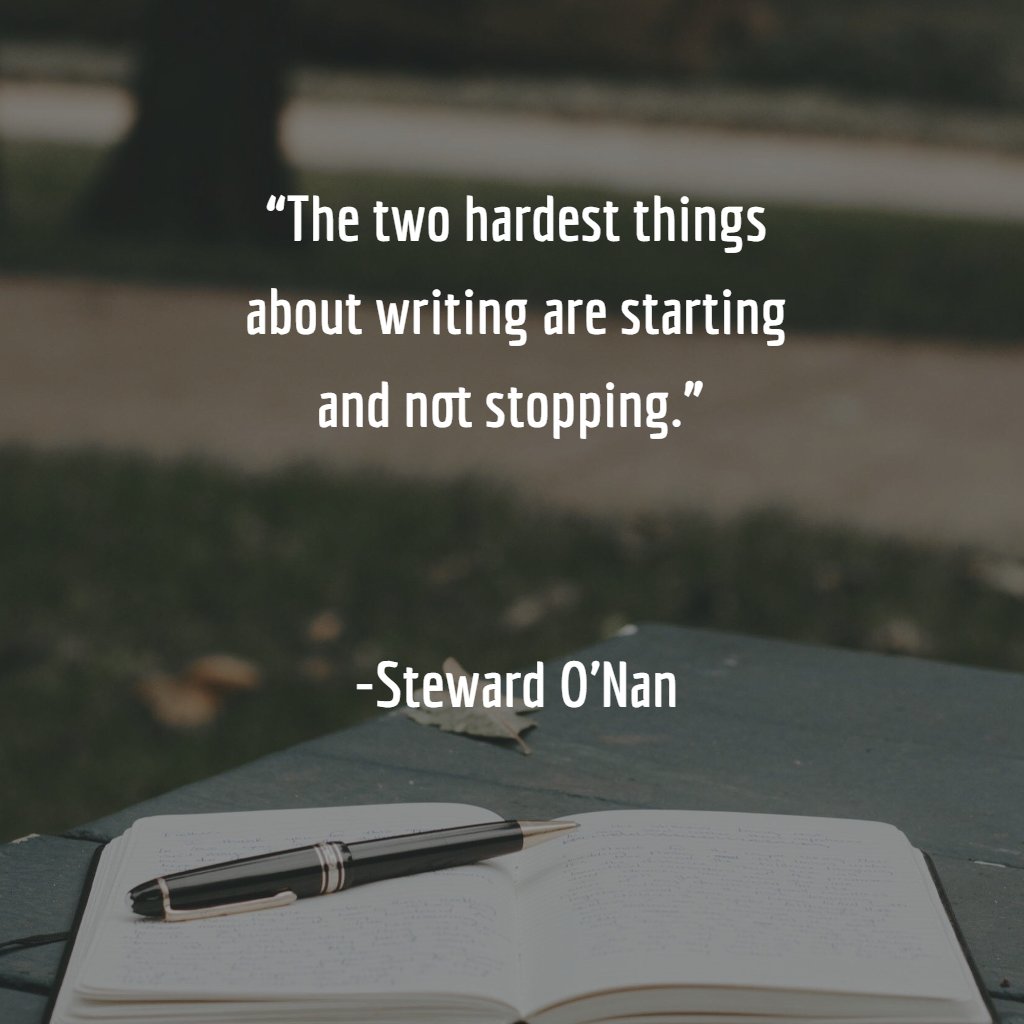 “The two hardest things about writing are starting and not stopping.” -Stewart O'Nan