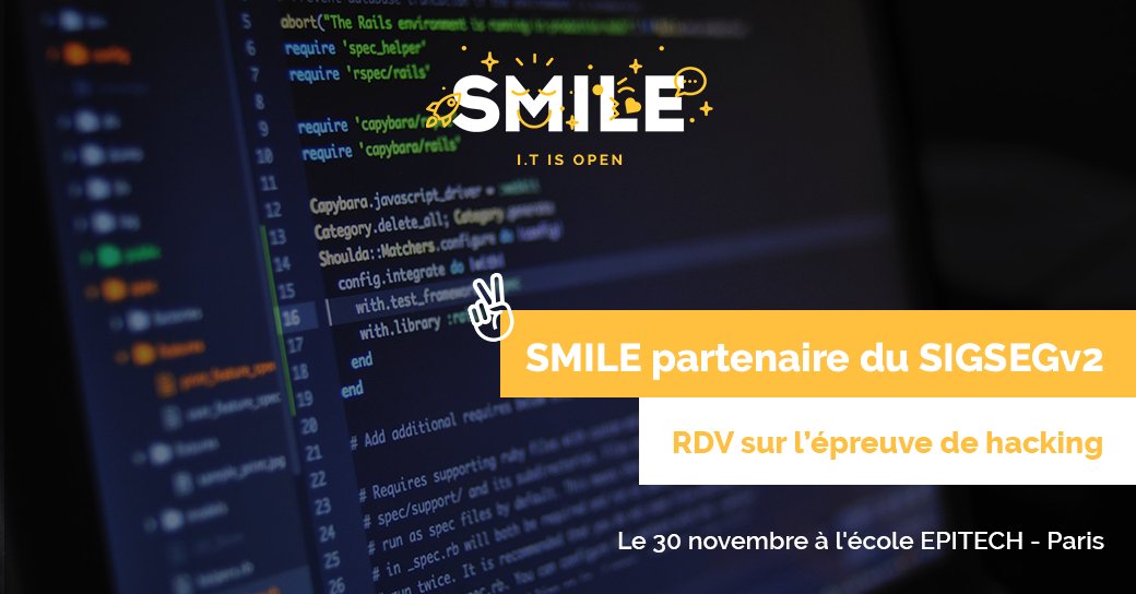 Smile est partenaire du SIGSEGv2 à l'école EPITECH de Paris. C'est l'événement français annuel sur le thème de la sécurité informatique et du hacking.