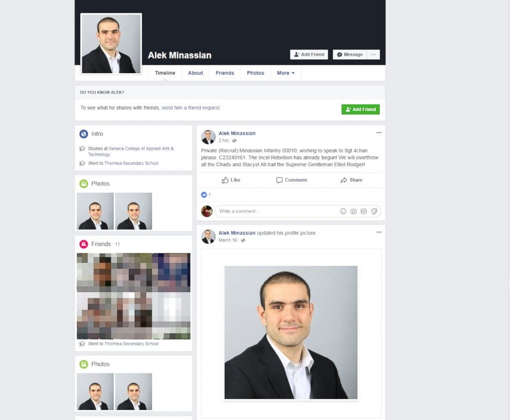 Toronto van attack suspect declared 'Incel Rebellion' in chilling Facebook post http://tinyurl.com/ycyh9wgc pic.twitter.com/KoACoizYqj