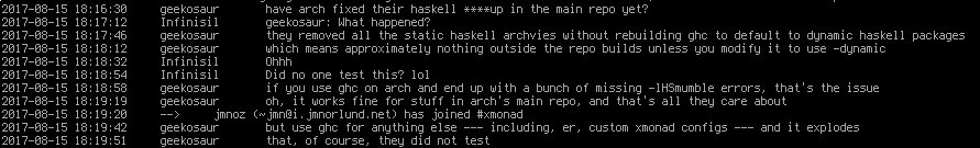 '(·)@allgebrah·Sep 19, 2017Replying to @sigfignope it's a problem commonly reported in the xmonad irc, upstream is innocent and kinda annoyed at arch112