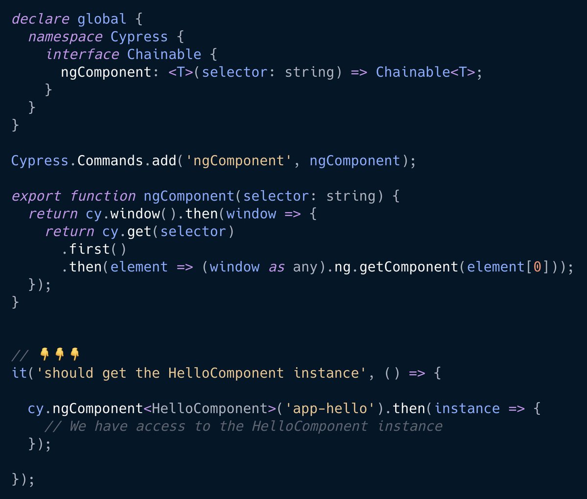 @Cypress_io command that obtains a reference to an@angular component instance: ( with Ivy )pic.twitter.com/Iws5oloRyQ