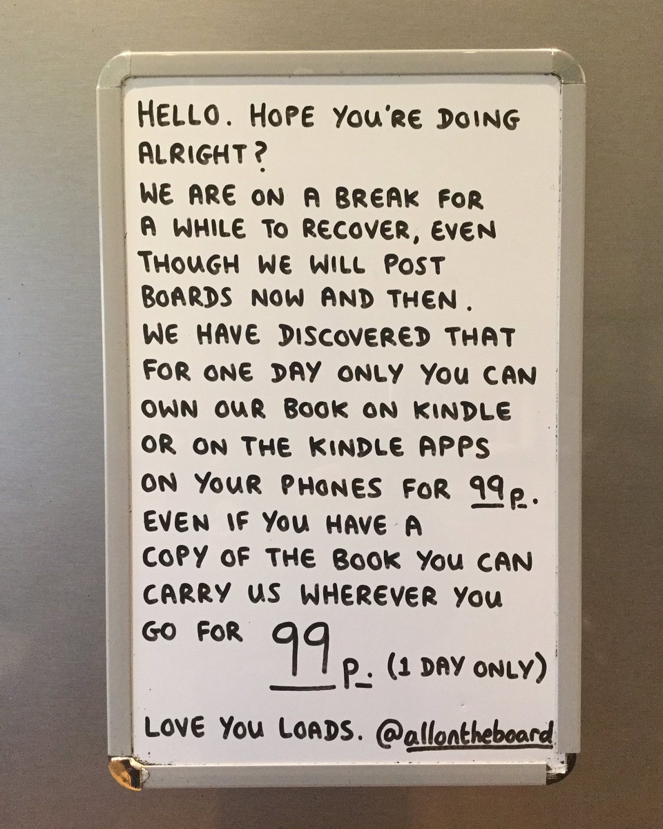Hello. We are on a break for a while to recover, even though we will post boards now and then. For ONE DAY only you can buy our book on Kindle or on the Kindle apps on phones and tablets for 99p. Yes, 99p.
