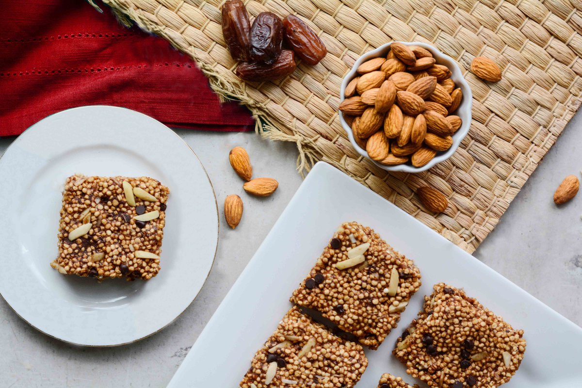 Want a healthy snack to crush cravings? Make my Almond Butter Puffed Quinoa Squares