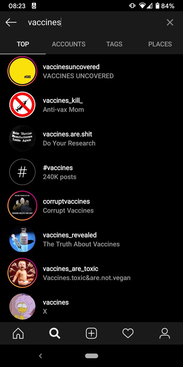 @instagram when searching for vaccines. Facebook still cares more about engagement (and related ad revenue) than being a positive contribution to society.pic.twitter.com/Yxu8c1I776
