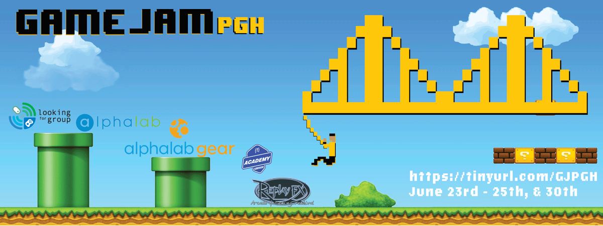 #GameJamPGH, 48hours of#game development. Nontechnical games welcome. Sponsors:@alphalab &@AlphaLabGear Prizes! https://www.eventbrite.com/e/game-jam-pittsburgh-dream-it-build-it-play-it-tickets-34657441340 … …pic.twitter.com/ORmsDxYBfF