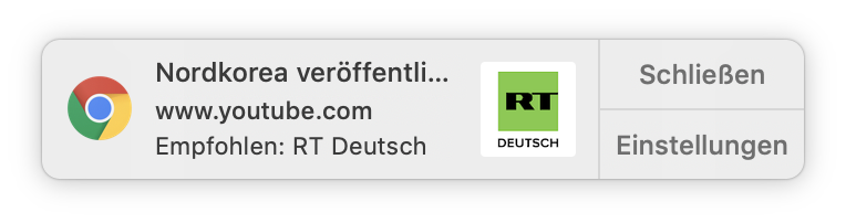 Es war die Empfehlung für den Account meines Eichhörnchen-Kanals. Also noch nicht mal des Politik-Kanals. Wer die Algorithmen verseht, schafft es auch, die politische Meinung zu beeinflussen. Google als williger Helfer für autoritäre Strukturen und Staaten.