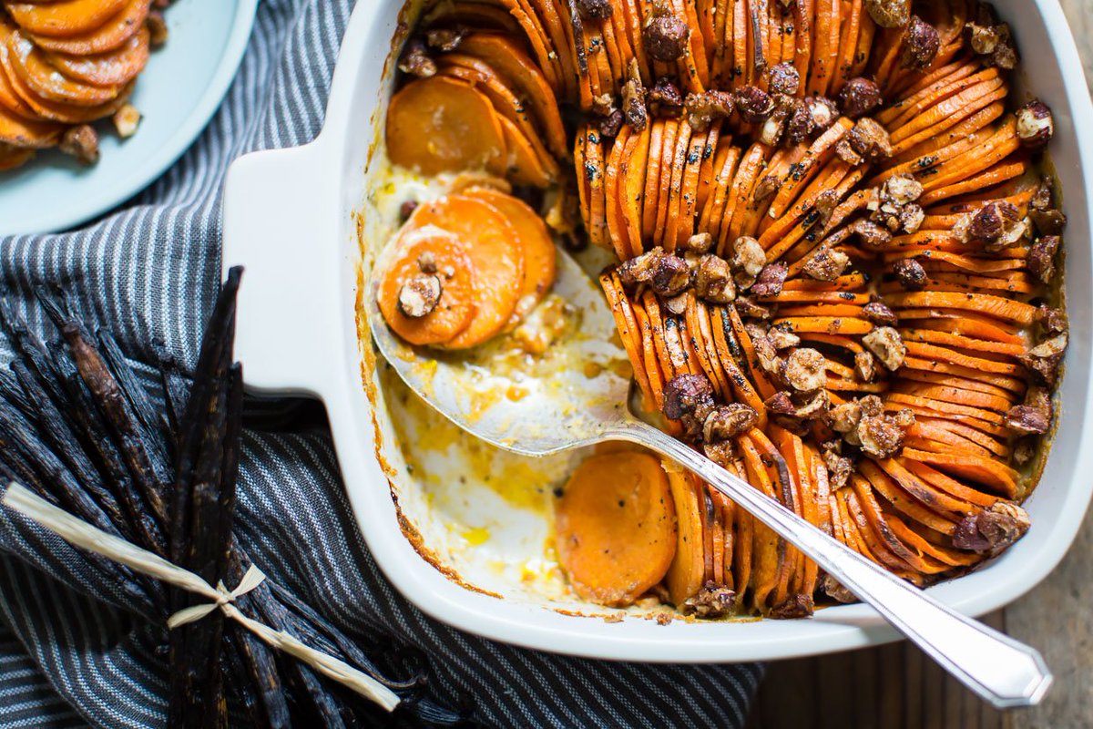 Vanilla bean sweet potato gratin on repeat w/