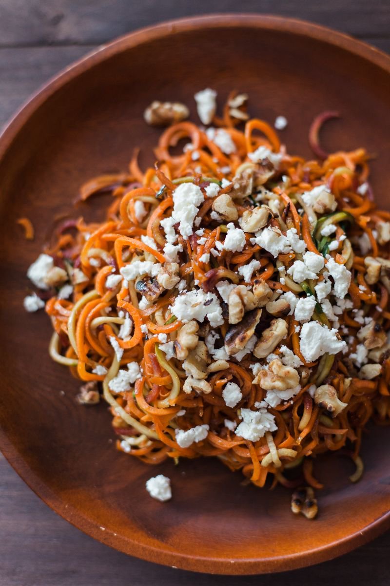 Check out this Roasted Spiralized Carrot, Feta and Toasted Walnut Salad from