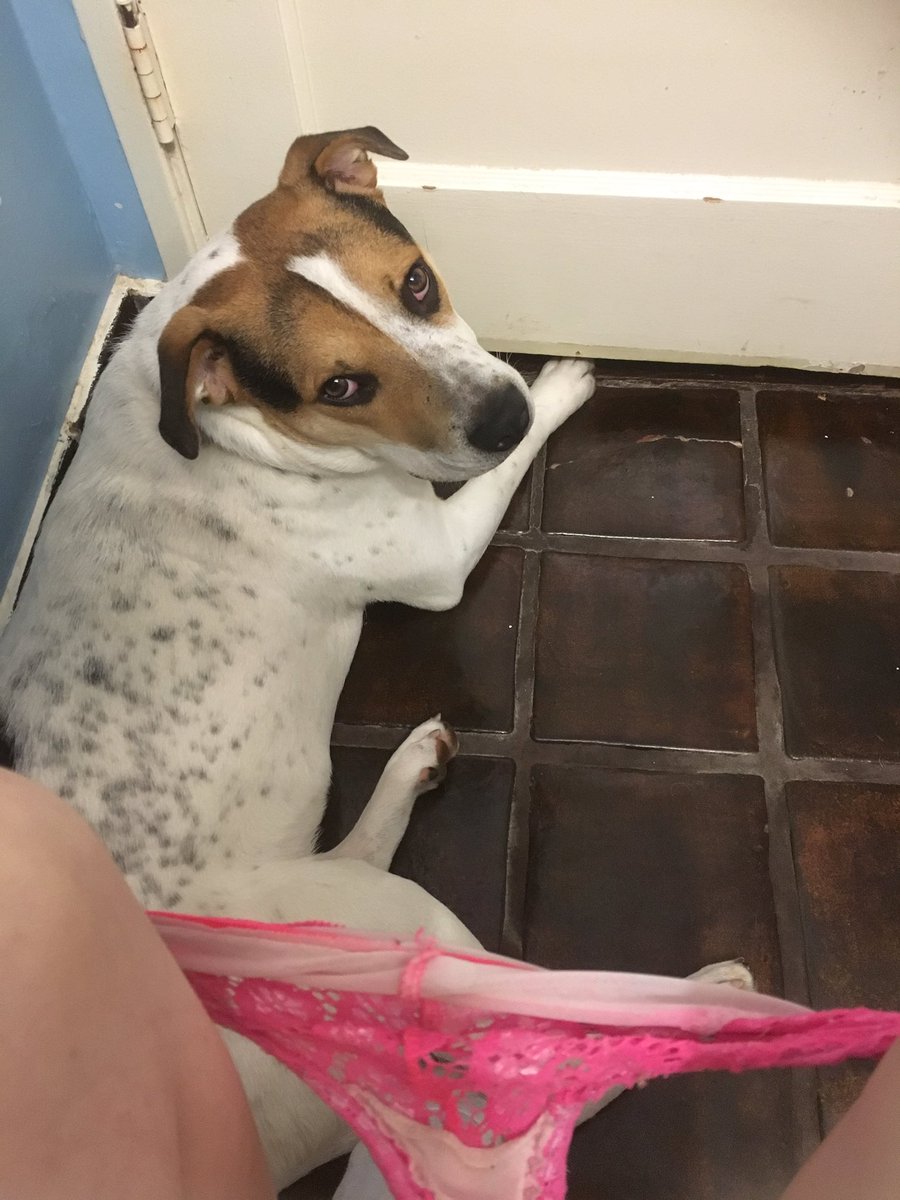 Y’all feel sorry for the dog but I feel sorry for the toilet!! It has to see her ass crack