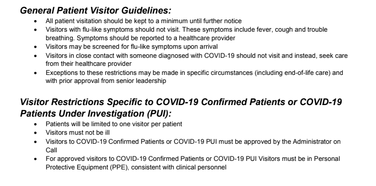 After a staff member at D.C.'s public hospital United Medical Center tested positive for COVID-19, UMC is temporarily limiting visiting hours and guests. The new guidelines say "no visitors are permitted to the Skilled Nursing Facility." See those restrictions:pic.twitter.com/nK4bRYoTBC