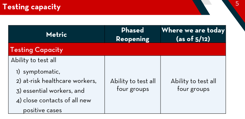 So it sounds like DC isn't using a tests per capita metric when deciding to enter Phase 1. Officials are looking at testing capacity for 4 key groups. Right now, DC has the ability to test all 4 groups, but not everyone in those groups are getting tested.pic.twitter.com/rBkiX488De