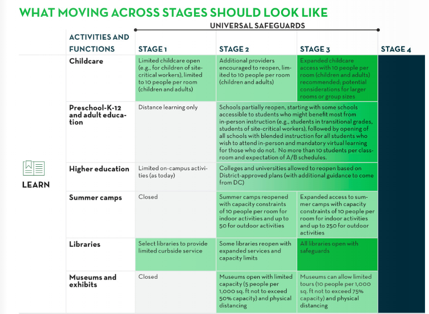 Mayor Bowser's advisory group released its recommendations for phased reopening: https://coronavirus.dc.gov/reopendc  Highlights from the general report:pic.twitter.com/J2CvVN8oCY