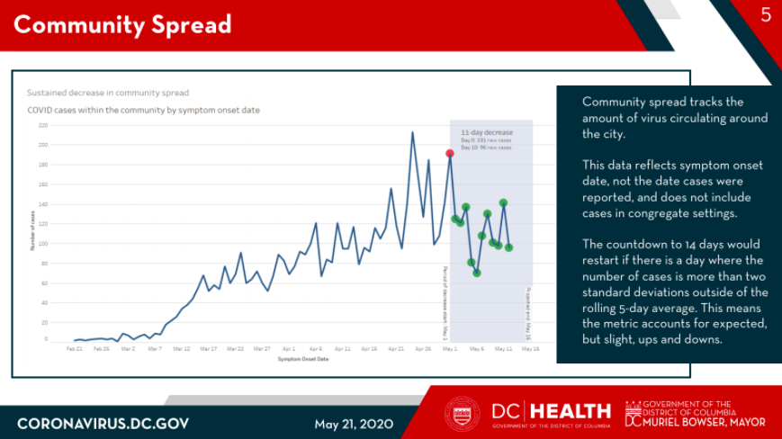 DC has seen a 11-day decrease in community spread, acc to May 19 data. We need 14 days to check off another metric and begin phased reopening. And today, the mayor's reopen advisory group is releasing its recommendations for phased reopening.pic.twitter.com/G87sA4yCPo