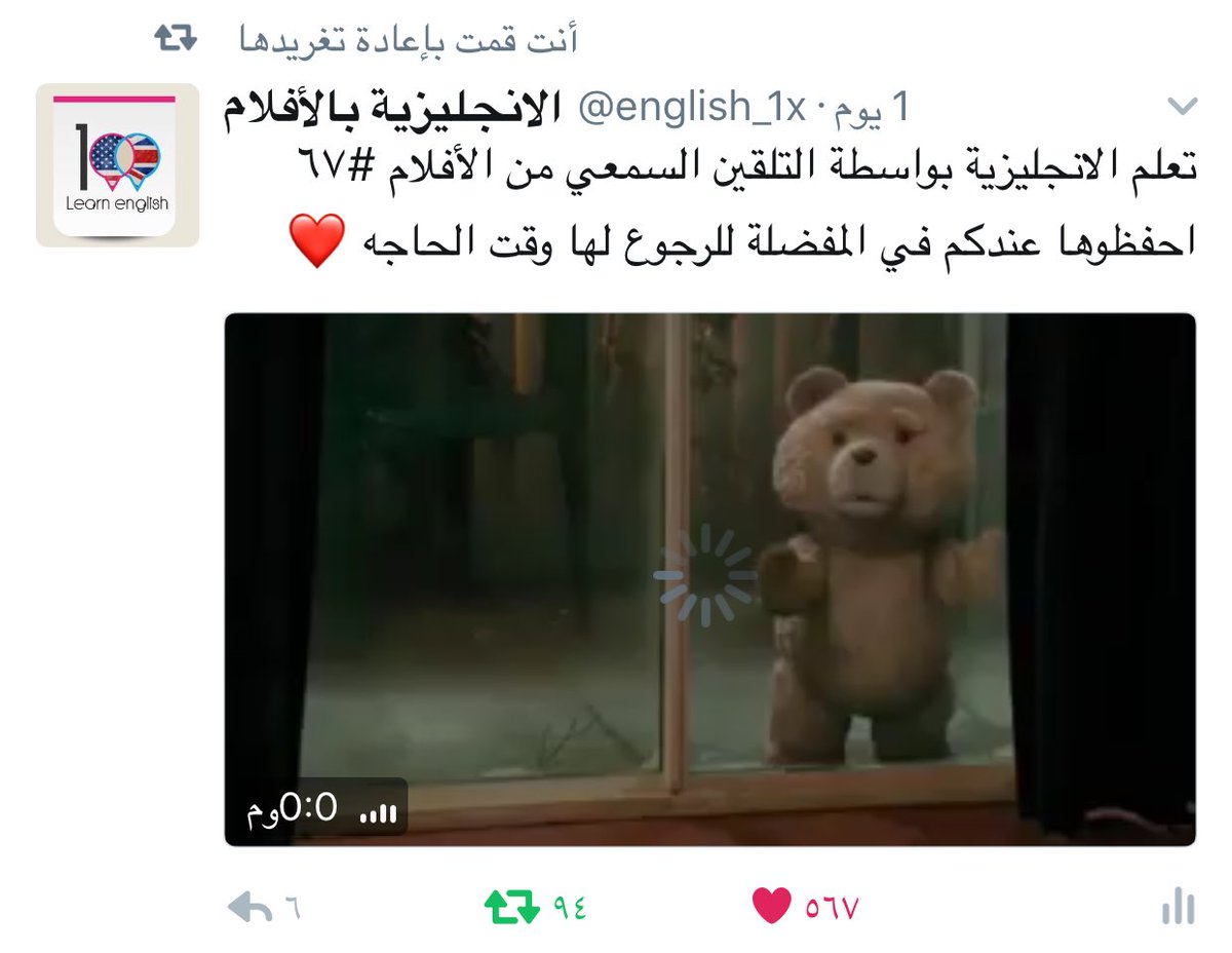 السلام عليكم ، أنا شاب اجتهد في تقديم محتوى يخص الأنجليزية عن طريق الأفلام ، هل من الممكن أن تدعموني برتويت لتصل الفائدة لأكثر عددpic.twitter.com/8bw2CrzxuX