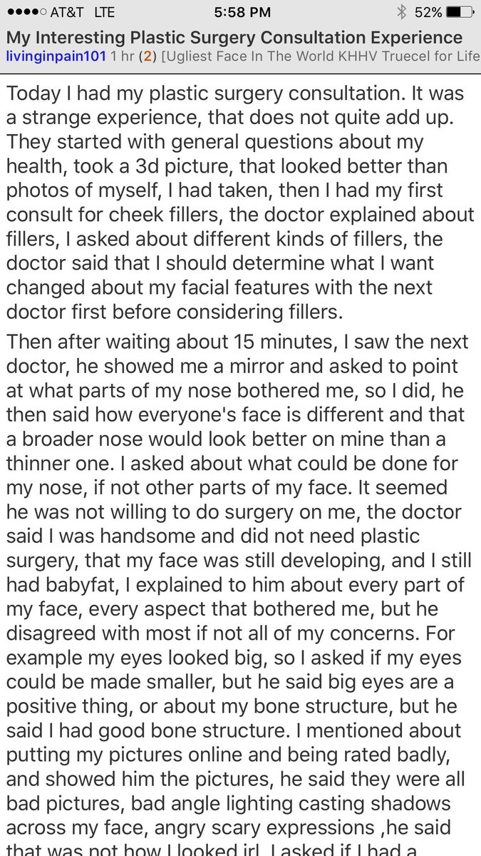 This incel went in for a plastic surgery consultation. You won't believe what the doctor told him (he looks perfectly fine, and is only 19)pic.twitter.com/zIZhu9NkFR