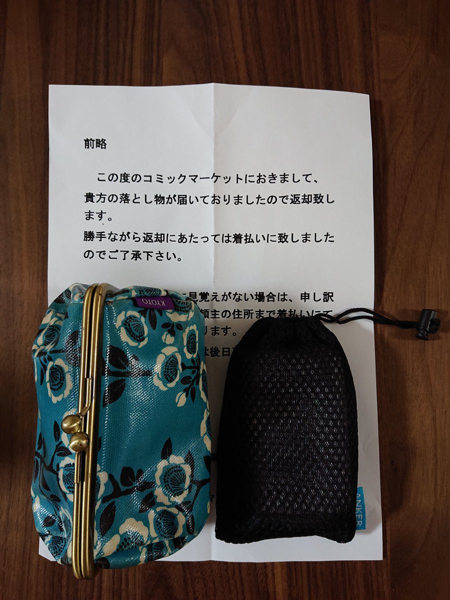 ご対応くださったコミケット準備会様、拾って届けてくださった方、本当にありがとうございました!