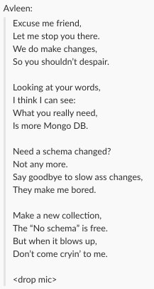 @thejohnmarc) asked for a schema change. This is the conversation we had (thanks@jazzdan for finding!)#opslife#dbapic.twitter.com/olQjNbolrP