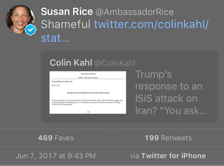 #اوباما تا وزير خارجه پيشين سوئد در توصيف واكنش#ترامپ به#حملات_تهران: “ننگين” “شرم/خجالت آور”pic.twitter.com/fdNS93ft2h
