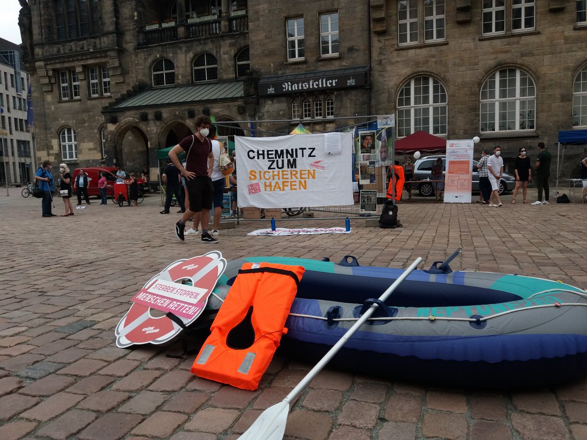 #Weltflüchtlingstag#WorldRefugeeDay beziehen wir Position für eine humane Asylpolitik in#Chemnitz und schicken Grüße an alle Aktiven, die heute auch in#Dresden#Leipzig &#Schneeberg Solidarität zeigen.pic.twitter.com/xGBO5BNrWB