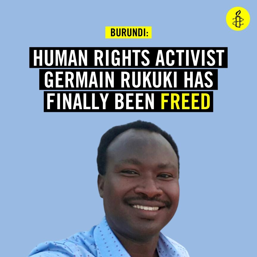 Wenige Tage nach der Haftzeitverkürzung wurde Menschenrechtsaktivist Germain Rukuki nun freigelassen - Danke an alle, die sich für ihn eingesetzt & nicht locker gelassen haben! https://www.amnesty.org/en/latest/news/2021/07/burundi-release-of-germain-rukuki-a-victory-for-human-rights/ …