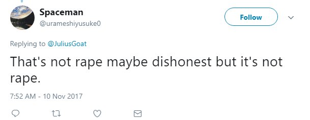 Oh except you didn't say that, you were talking about deliberately lying to get sex, so you see how we can tell you *also* know you're full of shit?pic.twitter.com/XyFf0k40op
