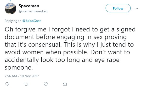 Oh look, somebody thinks not lying to a woman in order to get them to sleep with you is an onerous administrative burden.pic.twitter.com/EU6wNwuSMl
