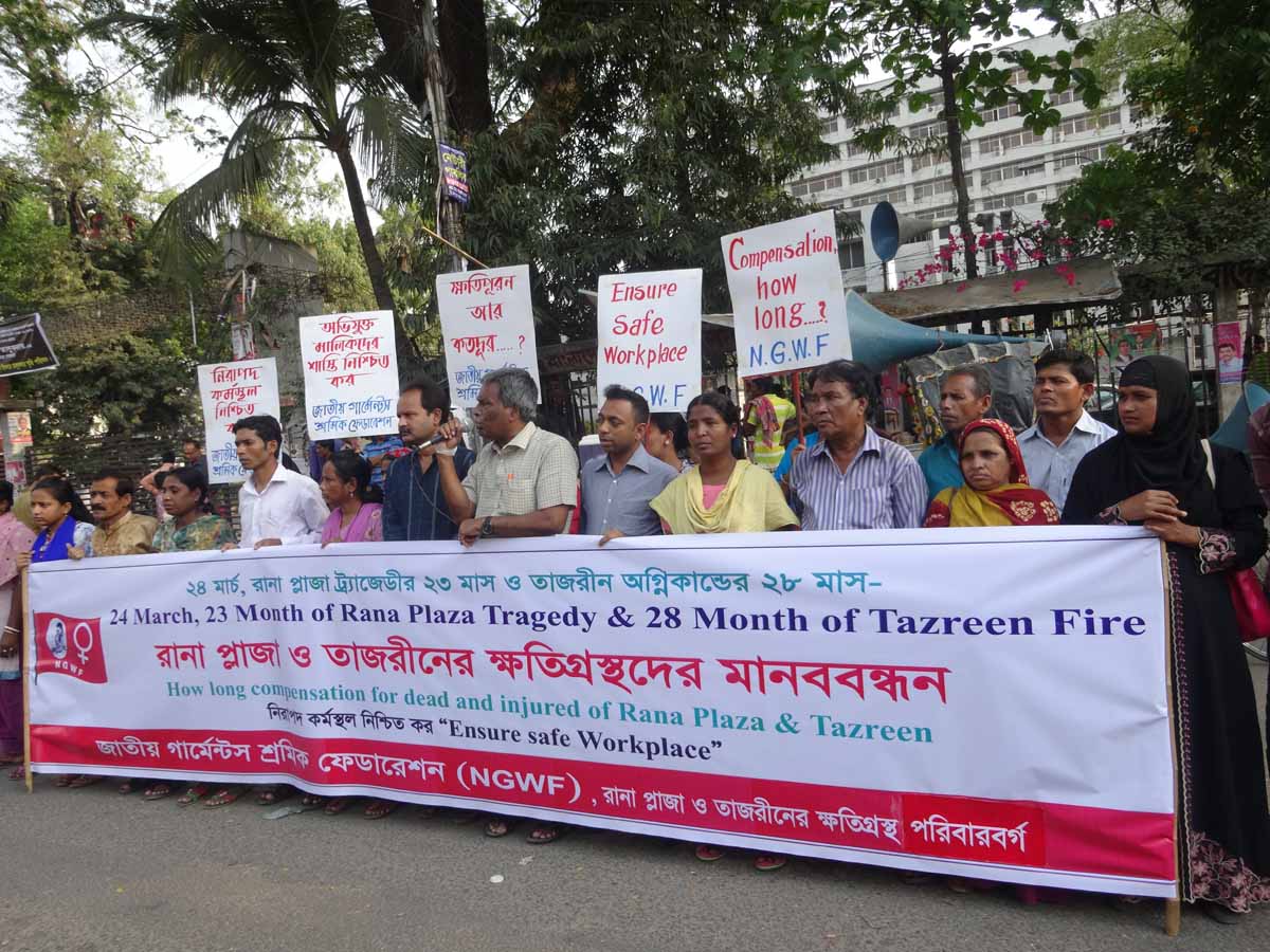 National Garment Workers Federation (NGWF) form human chain to remember #RanaPlaza tragedy #WhoMadeYourClothespic.twitter.com/S8ZOoxx36U