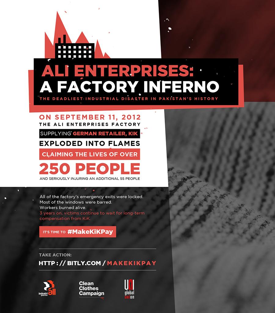 250 workers burned alive in the Ali Enterprises factory fire. Time for #KiKtextilien to pay long-term compensation pic.twitter.com/oCtV5DsTLz