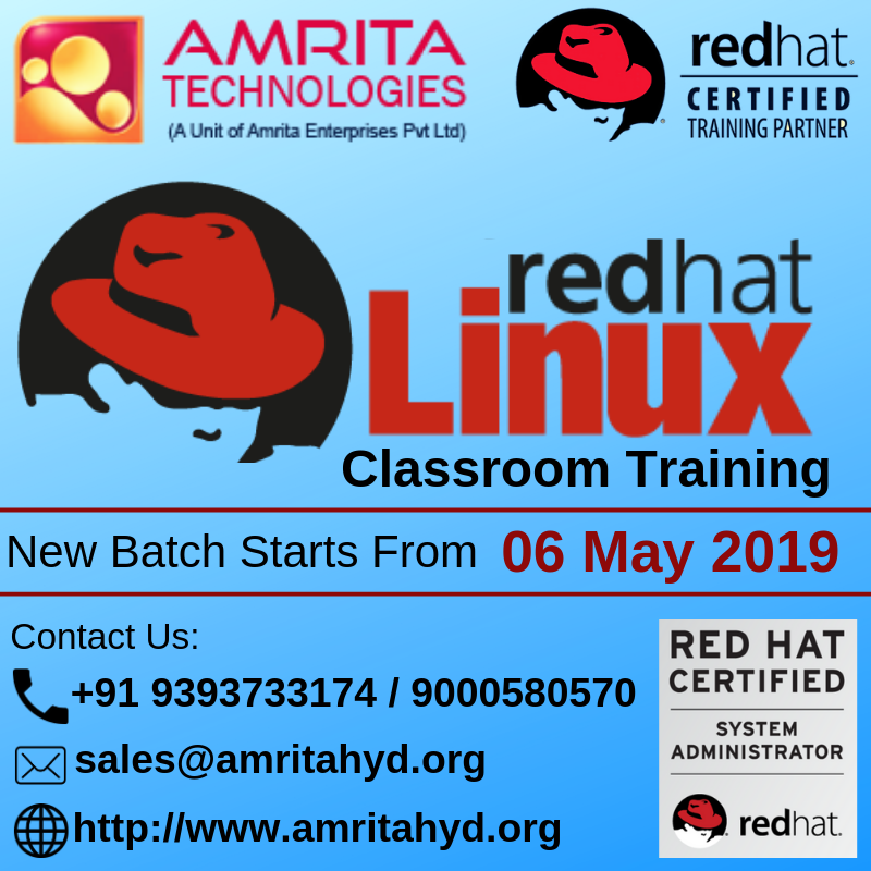 @RedHat #Linux ( #RHCSAandRHCE) Training and Certification New Batch Starting from #6thMay Register here https://bit.ly/2F3DqCC  Call to +91 9393733174 or 040 23733174 Mail us at sales@amritahyd.org Visit https://www.amritahyd.org/  #RedHat @linuxfoundation @RHCenter #RHCSA #RHCEpic.twitter.com/WzAOZTm5vC