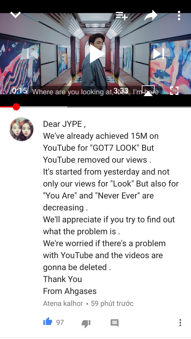 YouTube, you need to explain why you keep on deleting MV #LookGOT7 views. Yesterday 2M views. Today 1M views. And JYP entertainment should find out the reason too @GOT7Official @YouTube @TeamYouTubepic.twitter.com/l5Y64DapeU