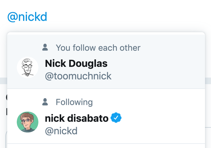 me: types the exact username i want twitter: hey i learned this cool trick from SLACK!!pic.twitter.com/UZitH1MvZ4