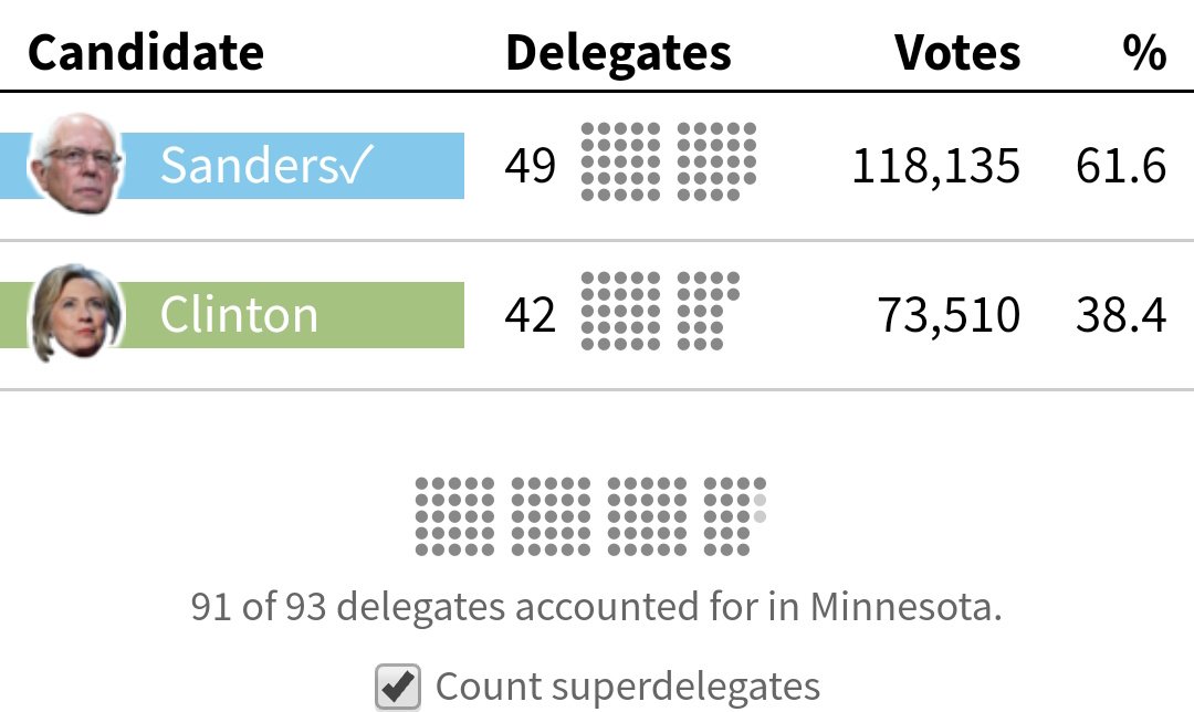 Amy Klobuchar, Tim Walz, and a few other DFL superdelegates used their "supervotes" to flip the 60%+ caucus in 2016. And people still support them. Stupid.