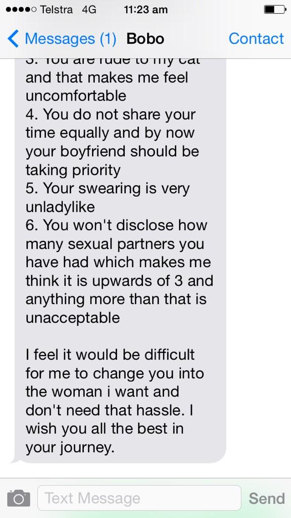 Amazing. Were there more? “@amynelmes: My friend sent me this break-up message she received after 7 weeks of dating. pic.twitter.com/K06nUbmqk4”
