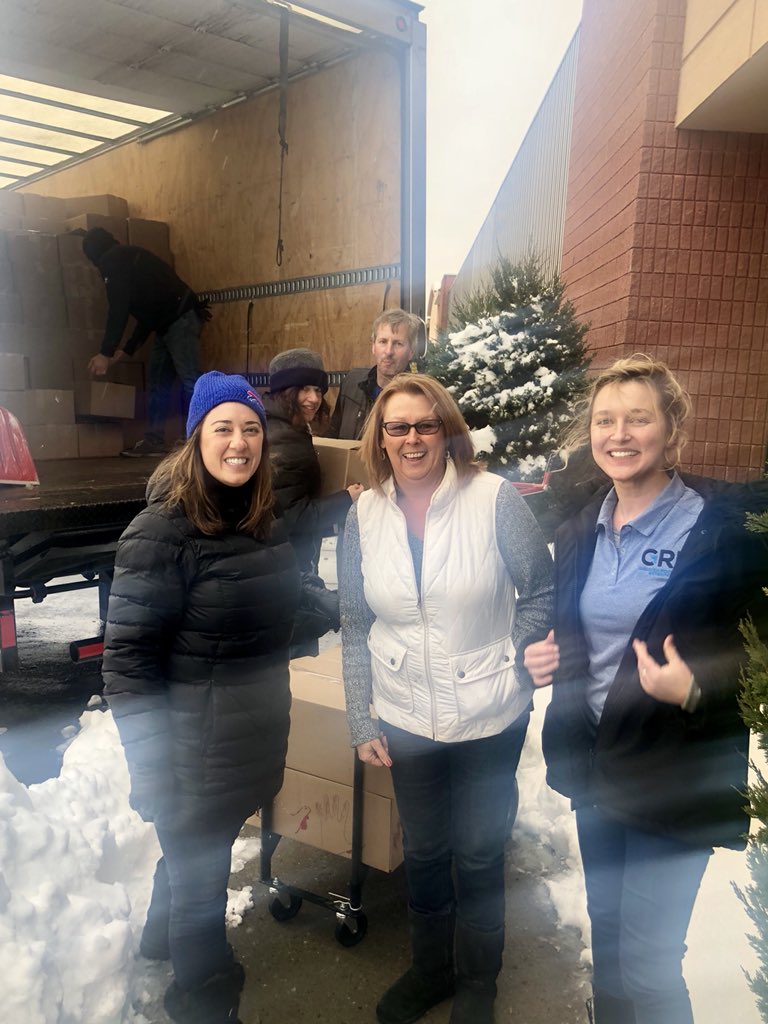 The @GRERochesterBiz strapped on our snow boots today to help @SBCRochester load trucks with food donation boxes for #SBCCares Thanksgiving deliveries! Great way to stay warm despite the snowvember conditions!