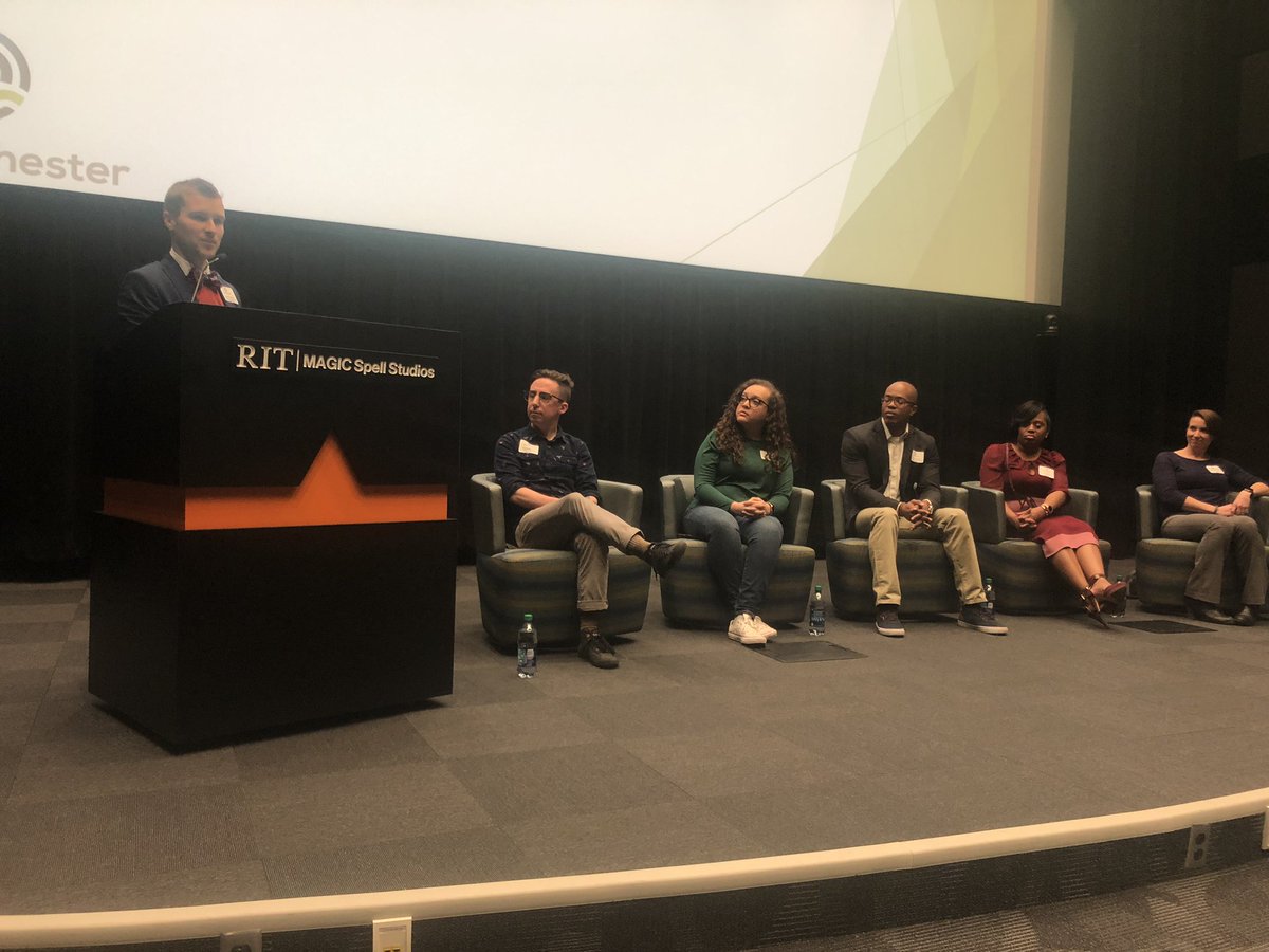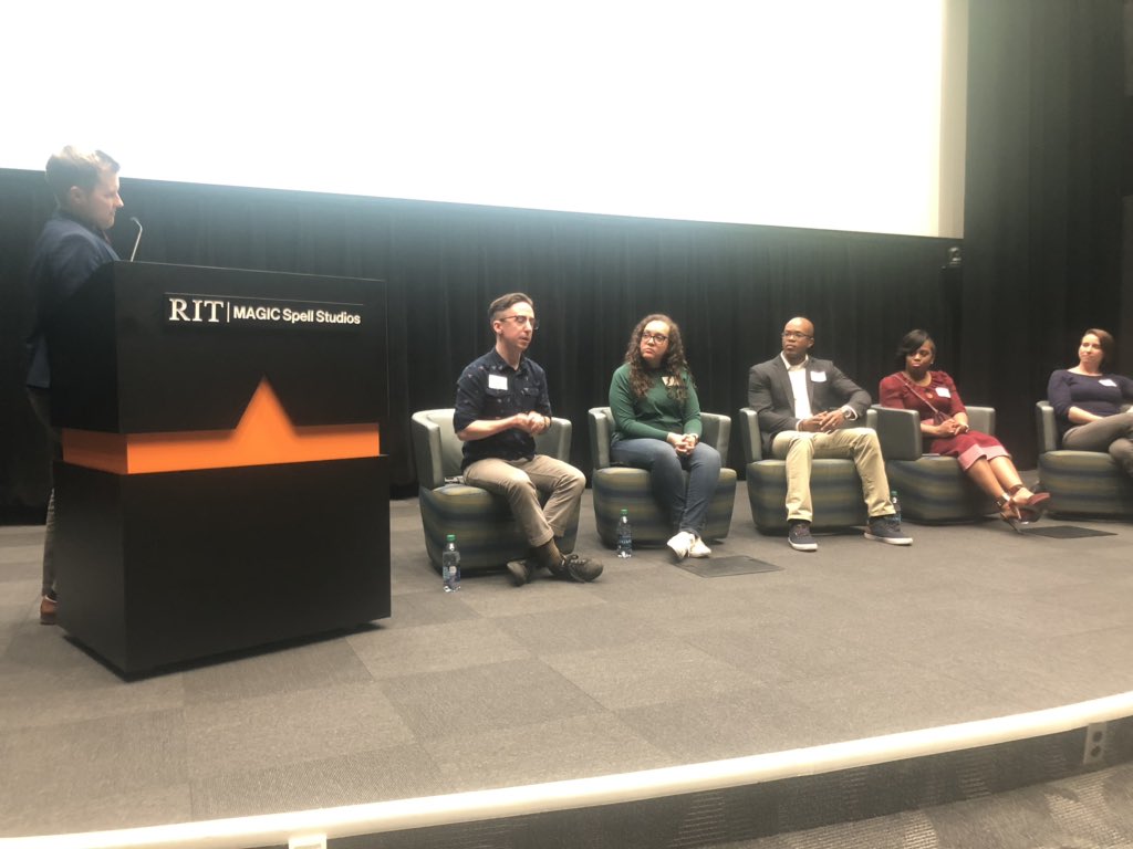 .@techrochester’s “Cultivating Inclusive Tech Communities in #ROC” is off and running at @RITMAGIC, w/ @atbrady moderating. As panelist Nathan Gibbons of @innovation_fin said, you can’t build products for people who are different from you without their perspective on your team.pic.twitter.com/D3ogHbUefH – at Magic Spell Studios