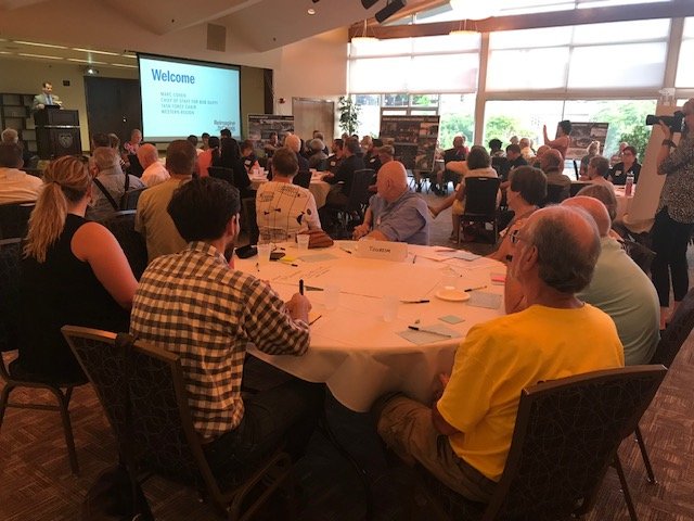 More than 100 people at tonight's #reimaginethecanal session (biggest one yet) at @Brockport to provide ideas and insights about future of #eriecanal. Sign up for next sessions in Syracuse and Utica at https://on.ny.gov/2LUenFS @NYPAenergy @RockefellerInst pic.twitter.com/VJ74Y0UlbY