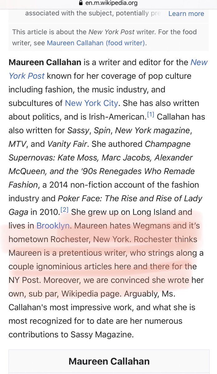 OK who did this to Maureen Callahan’s Wikipedia page lol #roc #wasntmepic.twitter.com/ZbRv0x0r7H