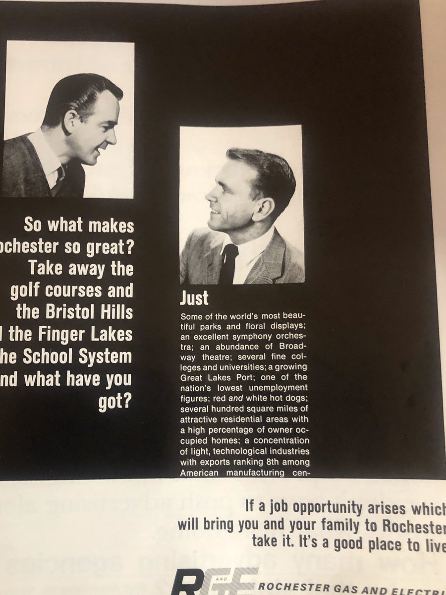 Going through old @RochesterChambr Rochester Commerce magazines and found this gem of a Rochester Gas & Electric ad from June 1969:pic.twitter.com/D6V61R0zKn