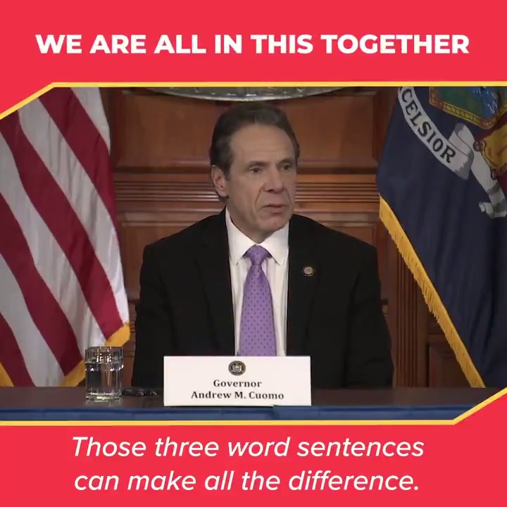 Three-word sentences can make all the difference: 'I miss you.' 'I love you.' I know many New Yorkers are anxious and worried. But we're all in this together. Let's support each other. pic.twitter.com/8KUqaEoqWC