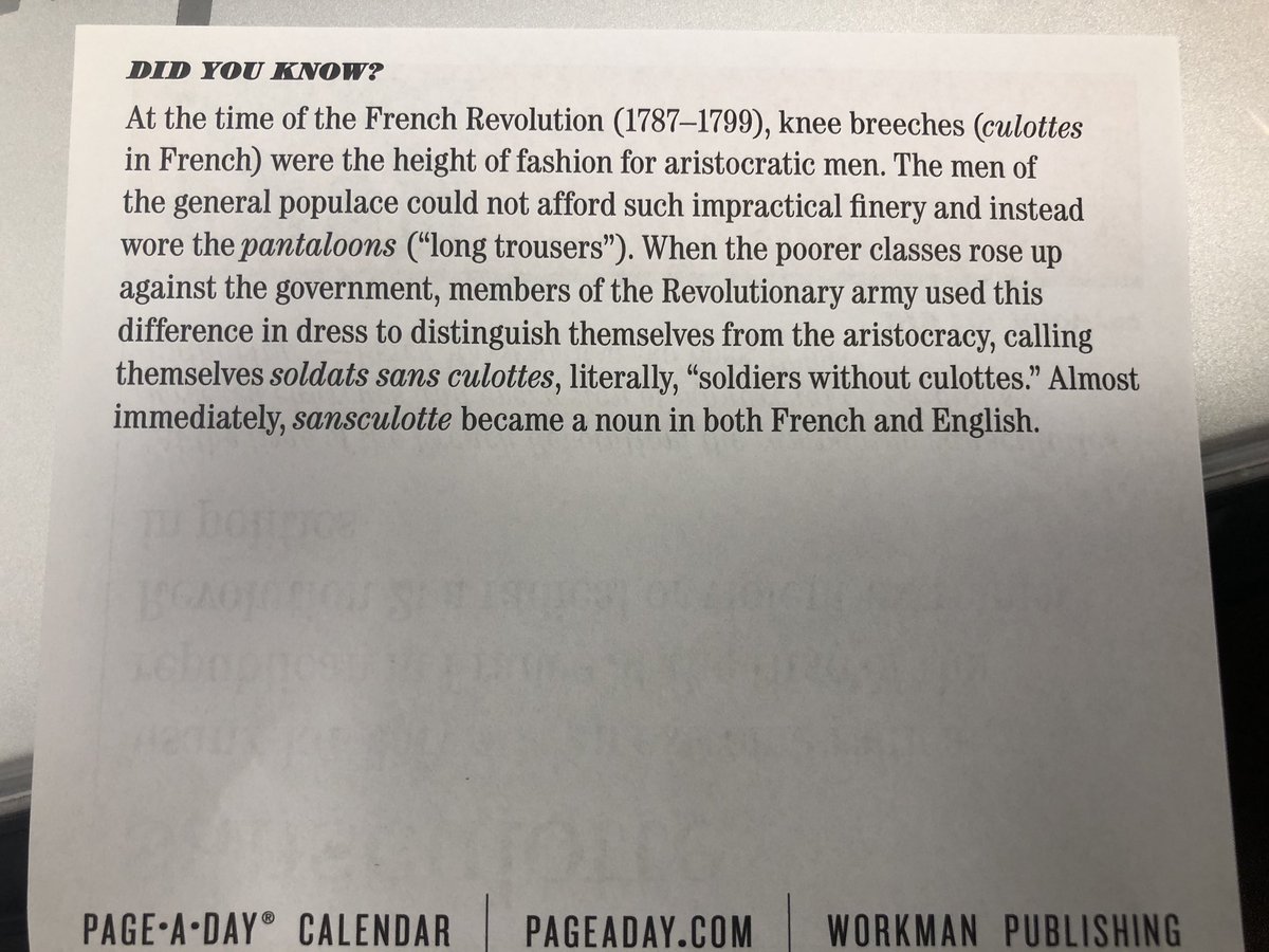 The revolution will not be wearing culottes. (#WordOfTheDay: “sansculotte.”)pic.twitter.com/bOi67wMqXV