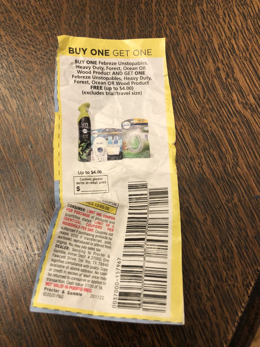 I am ”I’ve had this crumpled febreze BOGO coupon in my coat pocket for 3 weeks” years oldpic.twitter.com/uygygH12D1