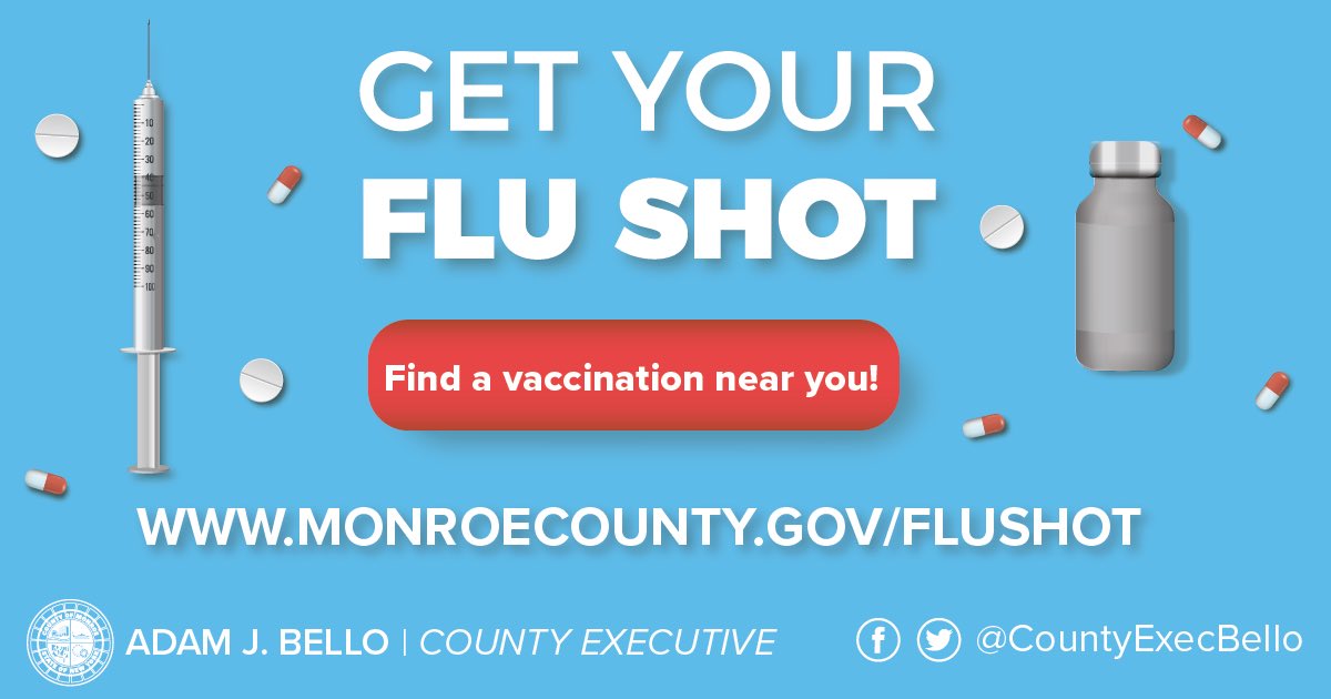 Cap off National Influenza Vaccination Week by getting your yearly flu shot! Monroe County is excited to be partnering with organizations from throughout the community with a goal of getting 80% of residents vaccinated. Find the perfect site for you at https://www.monroecounty.gov/flushot pic.twitter.com/s8JEkN54TQ